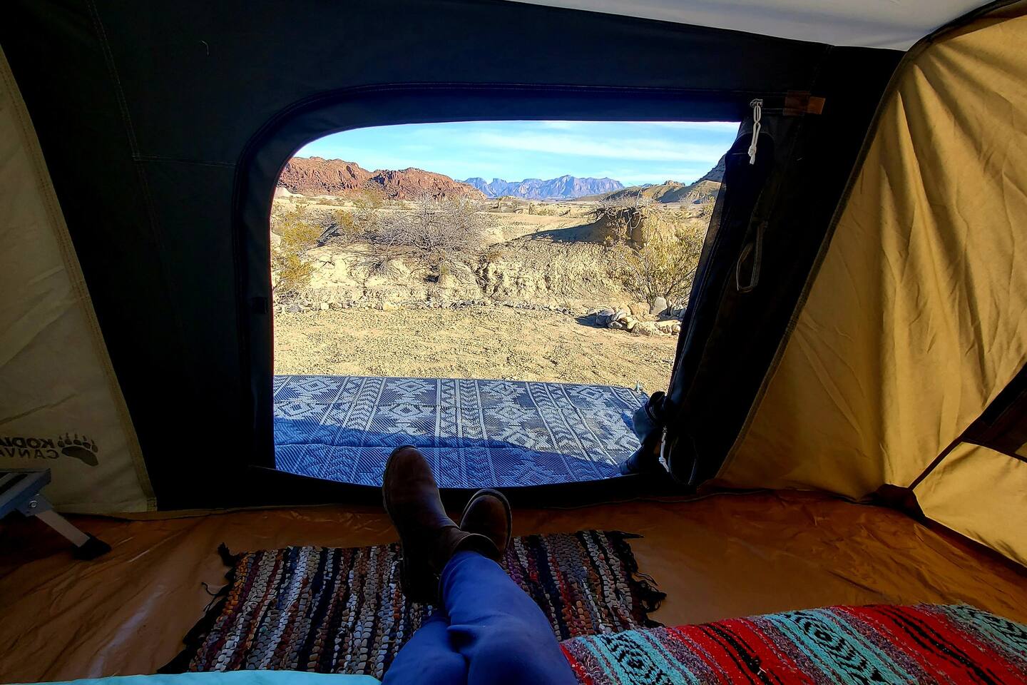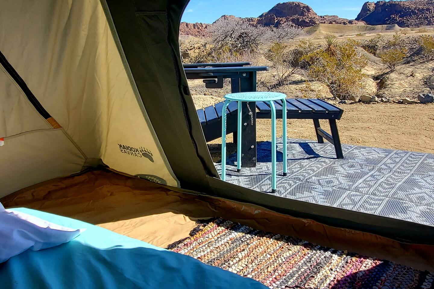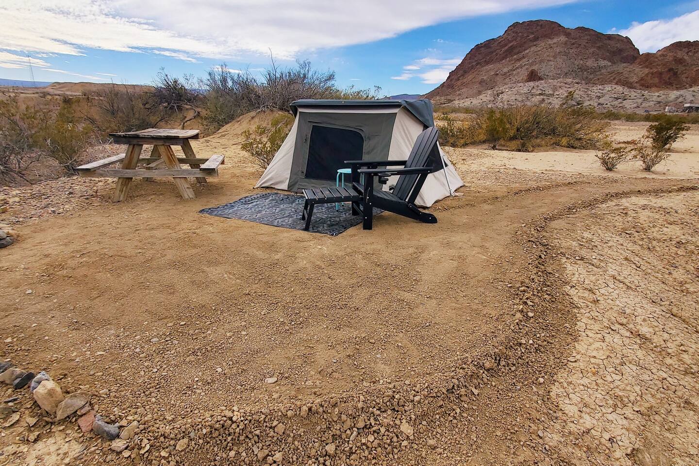 *Sweet private campsite! *10 min to BBNP & Terlingua *TWO ADULTS, over 18 yrs. NO pets. *Canvas tent: 6'Wx8'.5"Dx4'H, includes: a very comfortable TWIN bed,2 pillows, 2 blankets, table & lantern. *BRING SLEEPING BAG if it will be cold. *FULL size outdoor stargazer lounge net bed for sleeping/ stargazing provided *1 chair *Picnic table, cooking stove (bring your own 1 lb cylinders), firepit. *only a mile or so to, gas, groceries, etc. *SHOWER & clean outhouse No power/water on site